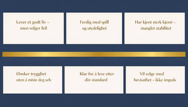 ❝ Jeg kom inn med et kaos av tanker – og gikk ut med en ro jeg ikke har kjent på lenge. Én samtale var nok til å få meg til å se ting jeg har ignorert i årevis. Dette traff meg rett i mellomgulvet. ❞